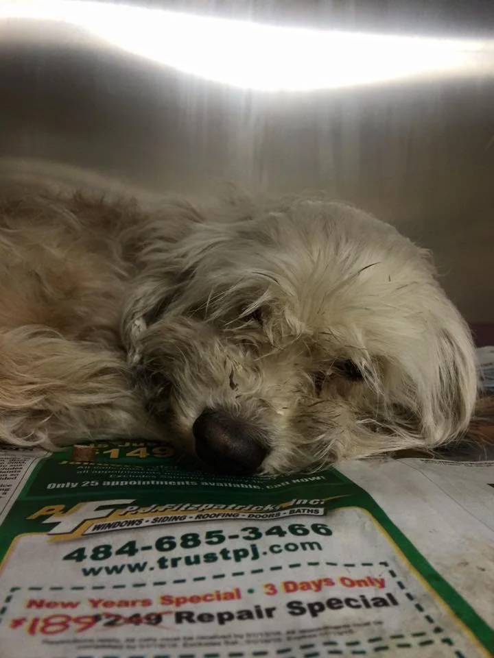 I met her at Animal Care & Control shelter in Philadelphia after she was brought in by a Good Samaritan, filthy, horribly emaciated, dehydrated, dull and extremely lethargic.