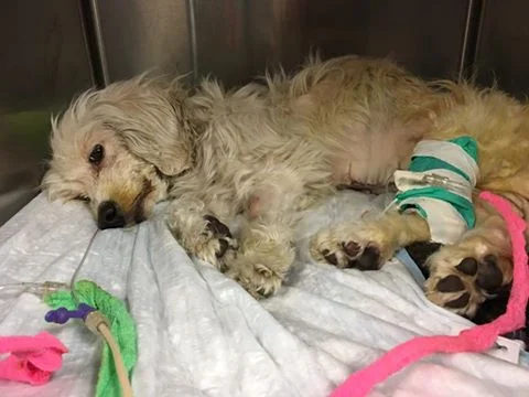 The shelter staff thought she had been hit by a car because she couldn't stand up.